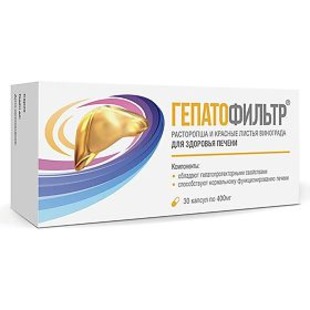 | Действующее вещество | Расторопши пятнистой плодов экстракт (Silybi mariani fructuum extract), винограда красных листьев экстракт (Extractum Vitidis viniferae foliae aquosum siccum) Источник: https://www.neboleem.net/gepatofiltr.php |
